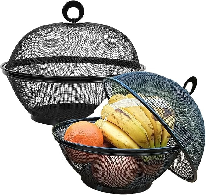 • MADE FOR EVERYDAY USE – Our 10.7″x9.44″ Comes with 2 fruit baskets and 2 covers; 4 pieces total,fruit holder is crafted using sturdy and durable metal wire mesh. This material won’t rip, tear, or crack easily, allowing you to use it every day.